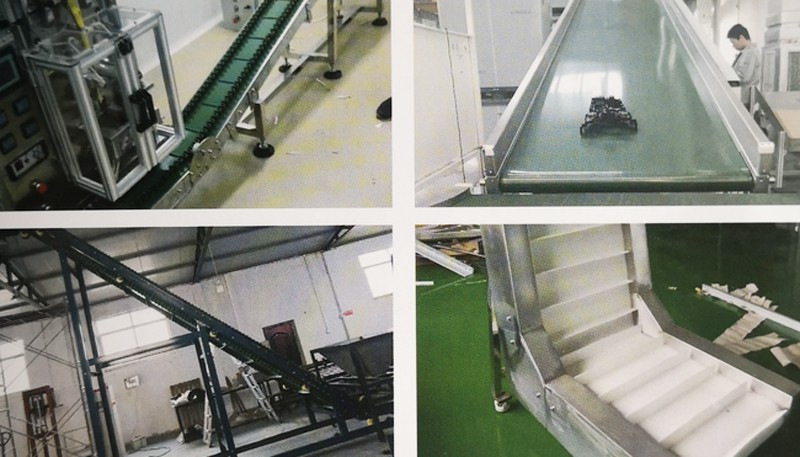 在皮帶表面高頻焊接裙邊擋板以達到提升輸送目的,最大提升角度45。